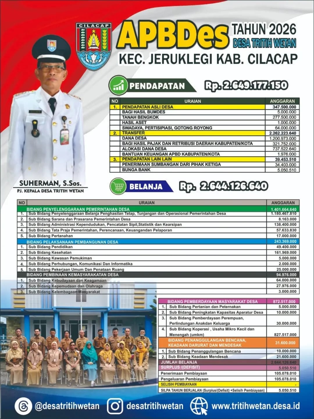 Pada hari ini, Kamis, tanggal 2 April 2026, pukul 09.30 WIB sampai dengan selesai, bertempat di Gedung Manggala Krida Desa Tritih Wetan, Kecamatan Jeruklegi, Kabupaten Cilacap, telah dilaksanakan kegiatan Sosialisasi Pembentukan Tim Pelaksana Swakelola (TPS) “TRITIH...